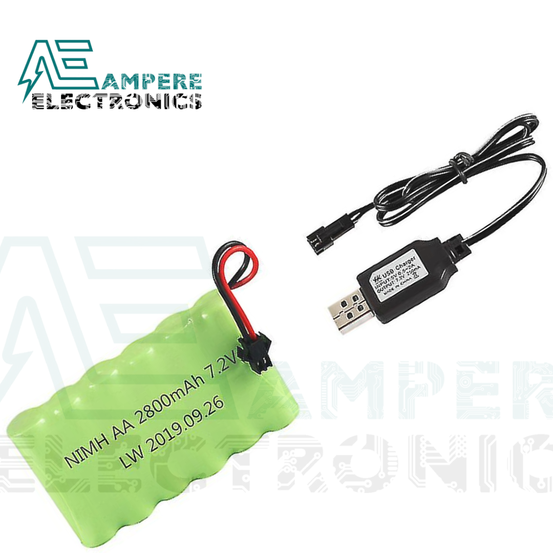 Rechargable Li-ion Battery AA 7.2V 2800mah + Charger USB Cable